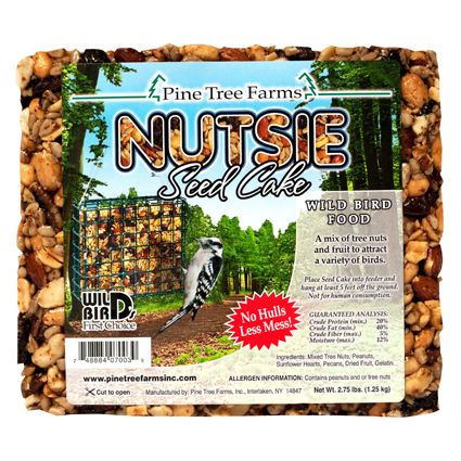 - Place seed cake into feeder and hang at least 5 feet off the ground