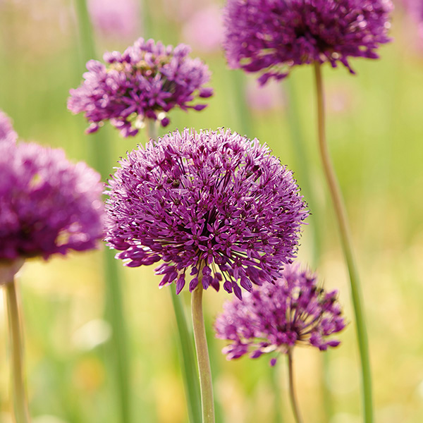 This joyous and exciting plant is often considered more versatile than the other large alliums. Use three Purple Sensations as a one-of-a-kind bouquet or flower arrangement. They also make a perfect purple focal point when planted as a middle border or in a cottage garden.