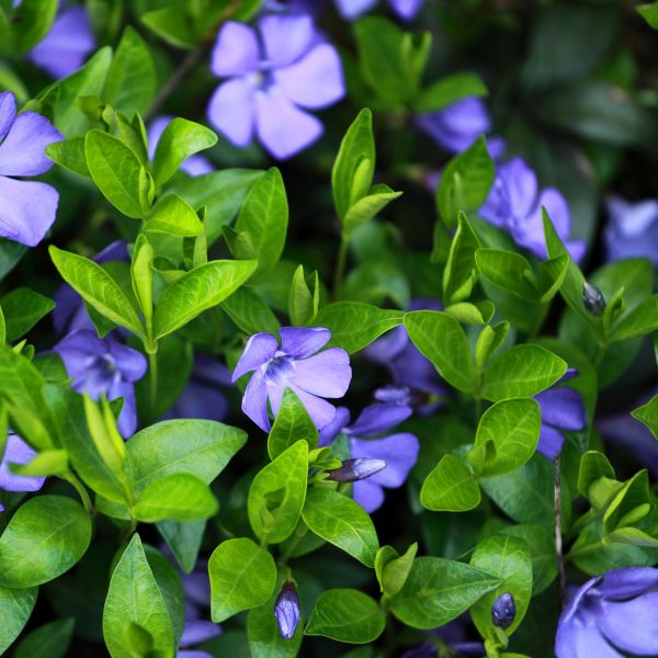Periwinkle is the most popular evergreen ground cover. Periwinkle can be mowed after blooming to help keep the ground cover thick and weed resistant.