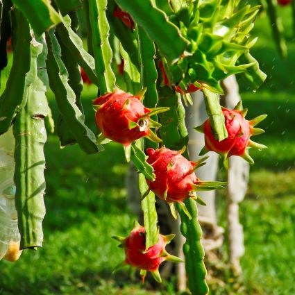 As a cactus, the Red Dragon Fruit thrives in low moisture and well-drained soil. After it’s established, be careful to not over water your dragon fruit. Freezing temperatures can kill a Red Dragon Fruit and damage its fruit. It’s also easy to propagate from cutting.