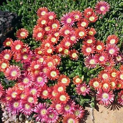 Delosperma is great for hard to grow areas in the sun garden because they do not require much water, yet fill in very quickly.