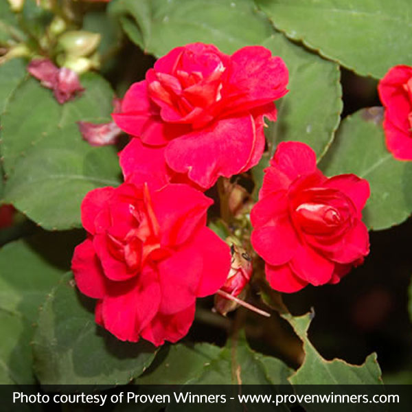 Impatiens Rockapulco® Red, Impatiens ‘Rockapulco Red’ PP#16,626, lights up any shady area with masses of bright red blooms. Rockapulco® Impatiens bloom from Spring till frost.