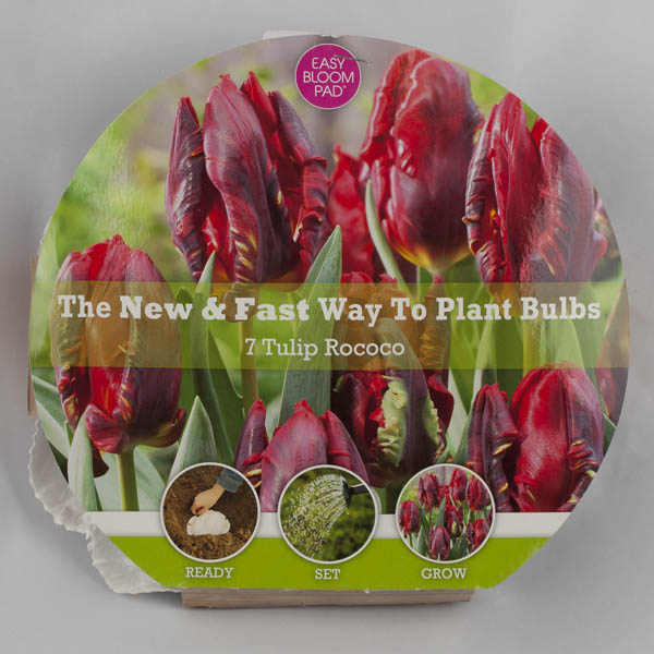 Rococo Parrot Tulips look like the gorgeous flowers in an old Dutch Master’s painting, so they have to be challenging to plant and grow, right? That couldn’t be more wrong. You can have a cutting garden full of these jaw-dropping flowers with so little effort you won’t believe it! New Tulip Parrot Rococo Bloom Pads come in packs of 7 top-grade tulip bulbs pre-set into a biodegradable cloth that simply dissolves into the ground once they’re planted. Your only work is to dig a 6” deep hole to fit the pad, drop it in, cover it with soil and water it. It is as simple as that!