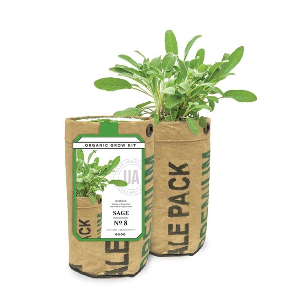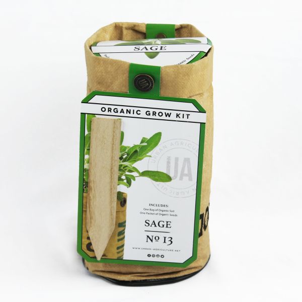 The Urban Agriculture Sage Kit is easy to grow and easy to care for. Everything is included: a pack of organic sage seeds, a small bag of organic soil, a plant tag and a recycled tea bag container with a modern urban design.