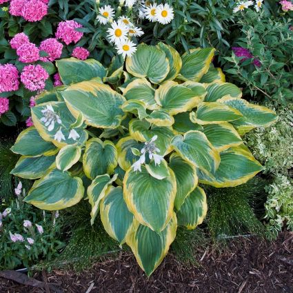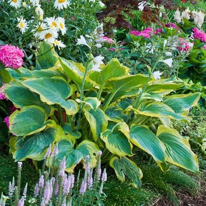 The Hosta Seducer, Hosta ‘Seducer’, is a very large sized Hosta with broad, dark-green leaves. ‘Seducer’ has dark-green leaves that are trimmed in slightly ruffled, yellow margins.