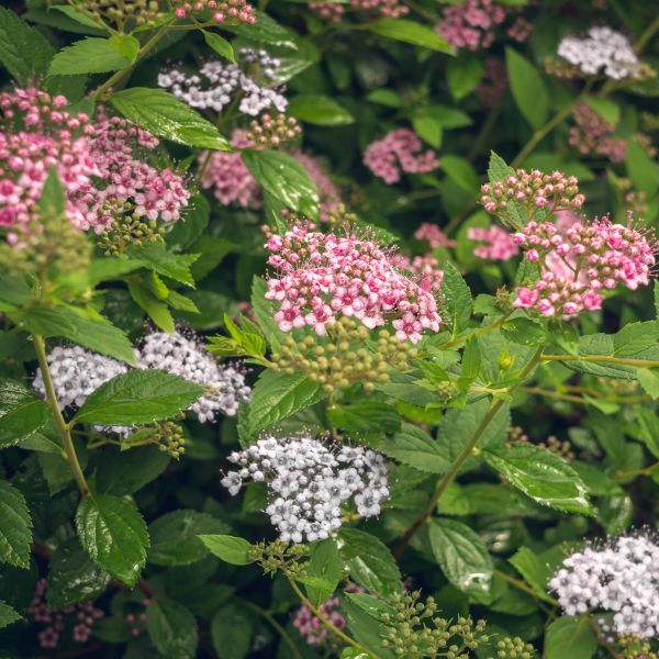 Thriving in a wide range of soils in sun or light shade, Shibori Spiraea is highly versatile and an ornamental that works well in mass plantings, mixed borders, and low informal hedges.