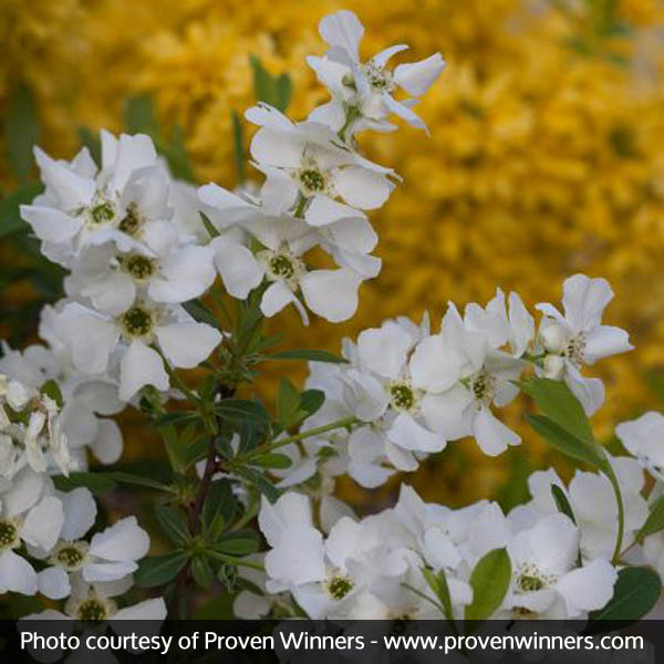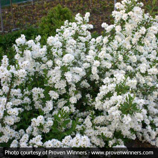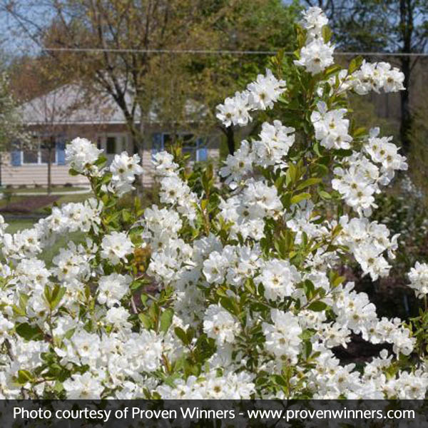 A spring flower powerhouse, Snow Day Surprise puts on quite a show from April to early summer. The snow-white flowers are large and come on in such profusion you’d think a blizzard had hit your shrub overnight!