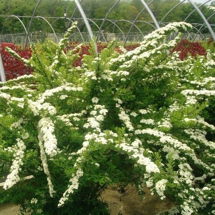 This is a tighter, more compact decorative deciduous shrub with the same beautiful arching habit. And the spectacular clusters of pure white flowers will surely remind you of the larger varieties.