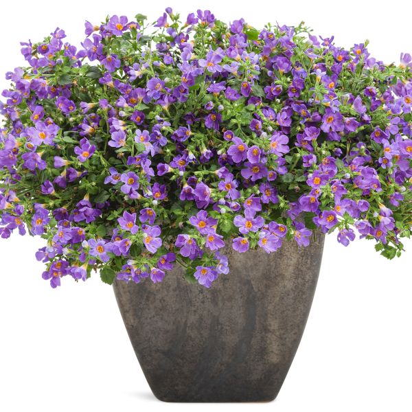 Growers love this re-blooming annual; it never runs out of blooming power as long as you keep its watered and make sure its soil doesn’t dry out. If our Snowstorm® Blue Bacopa gets stressed from poor watering, don’t worry; it will drop its flowers and buds only to bloom again a couple of weeks later.