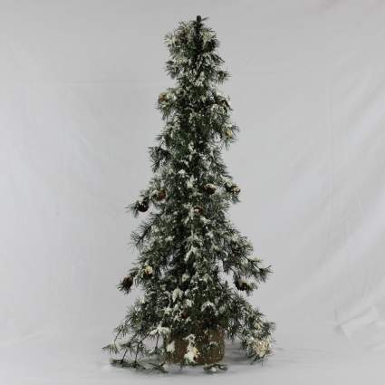Beautifully crafted with real pine cone accents and faux snow, these sweet trees will be the stars of the buffet table, a fireplace mantel or guest room dresser. With one tree almost 2′ tall and the other 3′ tall, these trees are small enough to fit any décor, but substantial enough to make an impression.