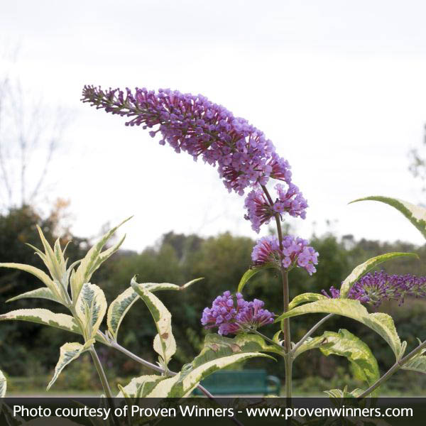 Your Summer Skies features long spikes of clustered lavender-blue flowers that are a show-stopper in summer and last through fall. However, perhaps even more valuable in this Butterfly Bush variety is the variegated foliage that will create an eye-catching image in your garden even when not in bloom.