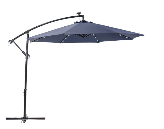 | size | Sun-Ray 10 Feet Round Navy Offest Solar Umbrell With Cross Base – Garden Center Item |