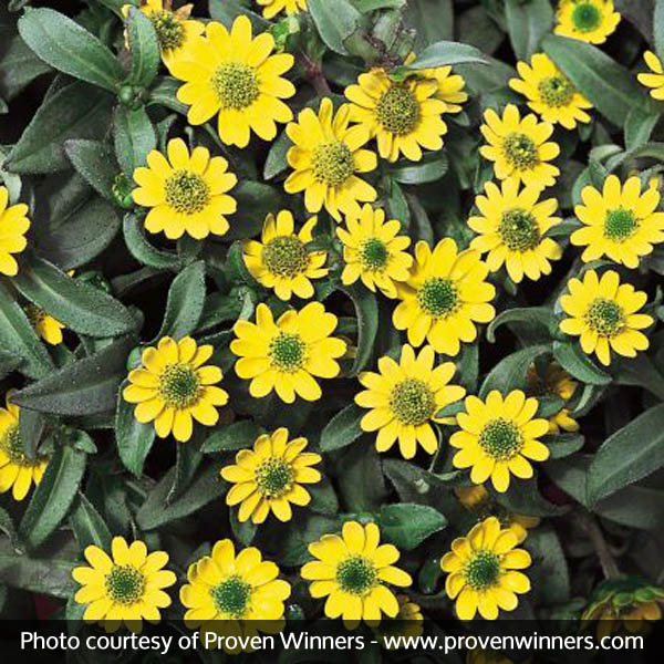 The Sanvitalia Sunbini, Sanvitalia speciosa ‘Sunbini’, is a Proven Winner selection and is a full and lush grower that is more compact than other varieties.