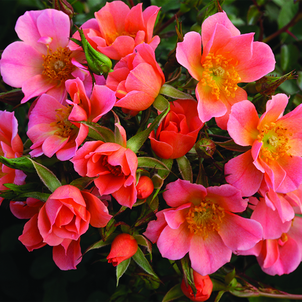 While its bountiful blooms will brighten your days, the Sunset Happy Trails™ Rose’s fruity fragrance will also boost your mood. It will also delight your local pollinators.