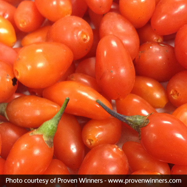 The Sweet Lifeberry® Goji Berries, Lycium barbarum ‘SMNDSL’ or Wolfberry Goji, are super juicy, bright-red fruits the size of raisins that grow by the hundreds on these plants. You will have plenty to juice, can, eat fresh and give away. They have a sweet-sour taste somewhere between a cherry and a cranberry. These little berries are ranked as a ‘superfood’ packing more antioxidants per bite than any other fruit!