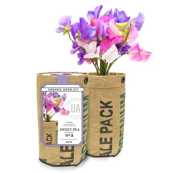 The Urban Agriculture Co. Sweet Pea Kit lets you grow a stunning living cascade of multi-hued sweet peas in a sunny window, on a balcony, or on a patio table. The kit includes a packet of organic sweet pea seed and some pre-measured organic soil. Soak the sweet pea seeds overnight and plant them in the included recycled tea-bag container with the soil. Then just add water and you will soon be enjoying these gorgeous flowers that you grew yourself!