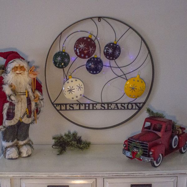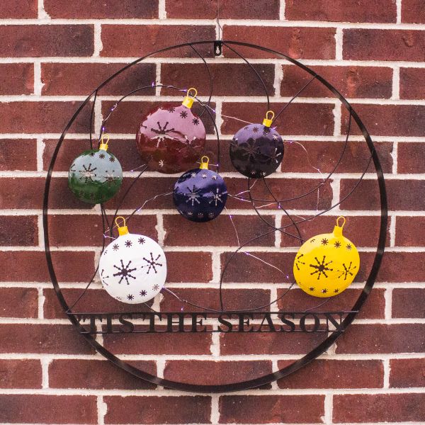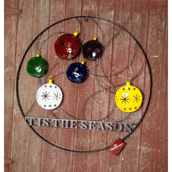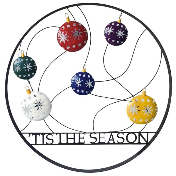 Celebrate the Holiday Season by welcoming your guests with this 29″ Decorative Wheel featuring the message ‘Tis The Season. Made of durable metal and featuring holiday ornaments, this wheel will look great by your door, on a fence, and even used inside your home to decorate for the season. This is not just for the holidays but can be utilized all winter long.