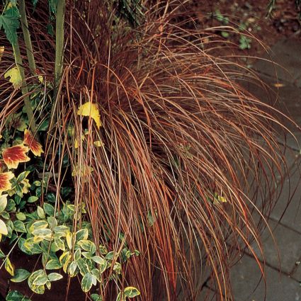 And it comes on a beautiful and tough-as-nails plant. Toffee Twist Sedge (Carex Flagellifora ‘Toffee Twist’) is a graceful, grass-like plant that gives structure to mixed plantings and wildness to formal borders. It’s size makes it great in the front of the border or massed in a bed. The best bronzy-brown color is in full sun, but it can take a little shade too.