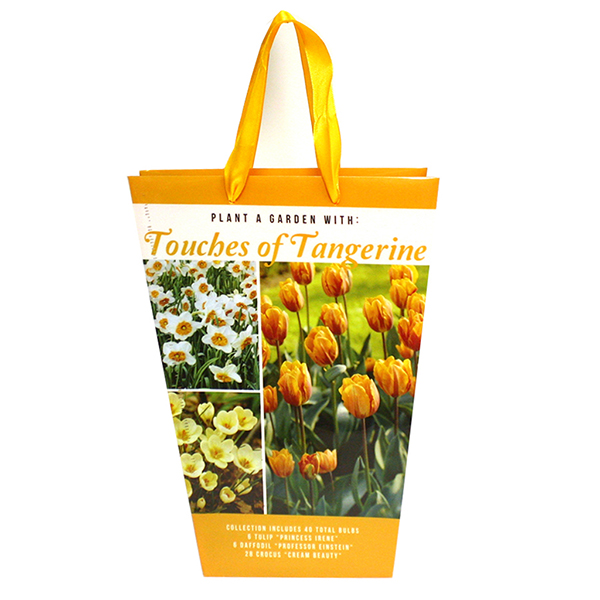 A touch of tangerine can really bring golden glee to your spring garden. There’s nothing better than the harmony of orange and yellow, and the Touches of Tangerine Elegance Bag perfects the dance between the two. With Princess Irene Tulips, Professor Einstein Daffodils, and Cream Beauty Crocus, this gift bag will set your garden ablaze in warm hues.