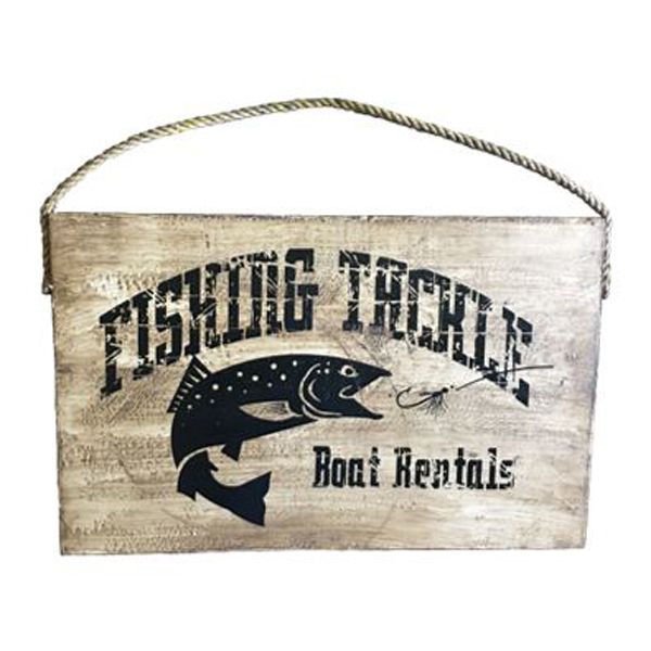 Little touches help bring your living spaces to life, and this line of distressed wood signs are perfect for adding that vintage touch to your home. The Fishing Tackle sign is for indoor or outdoor living areas, or even your cabin or dock! Each piece is treated with a polymer coating to help protect the look, and make these pieces built to last.