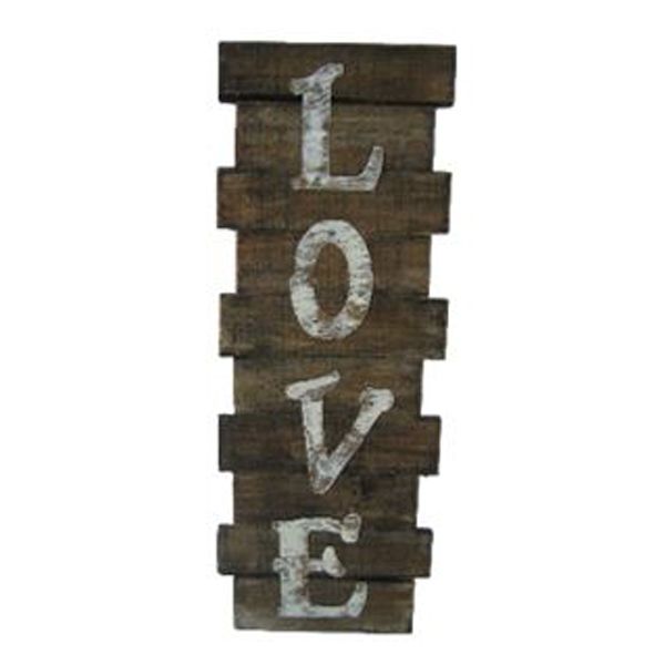 This unique “Love” sign will add that special touch. Made from distressed wood and laser cut metal letters, this sign is perfect for adding that vintage look to your space. These signs are made from original materials, and each will have a slightly different look. The colors will vary slightly from piece to piece.