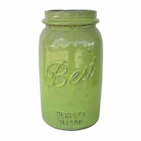 | size | Vintage Pottery Green 11 Inch Tall Mason Jar – Garden Center Item |