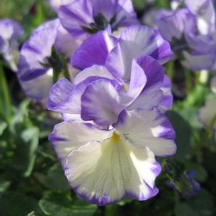 Violet Rebecca Viola ‘Rebecca’, has sweet, vanilla scented flowers that are uniquely colored white with a yellow flush in the center, and then flecked with deep purple around the edges. No two are alike, but every one of these purple flowers is irresistible.