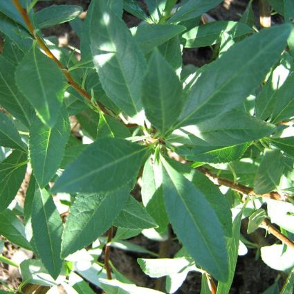 Western Sand Cherry, Prunus besseyi, is a native American shrub which displays attractive, single, white flowers in May. It then produces an abundance of 3/4″ purple-black sweet fruit. They can be eaten fresh, dried, or processed as jellies and pies.