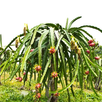 Like other cacti, the White Dragon Fruit is easy to care for. The first thing you’ll want to do is provide yours with adequate trunk support and support for its vines. They prefer as much sun as you can offer and dry, well-drained soil. This variety is self-fruitful, so you don’t need a partner plant.