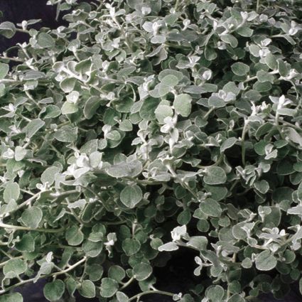 The Licorice, White Licorice, ‘Helichrysum petiolare’, exhibits vigorous growth and elegant silver-frosted foliage.
