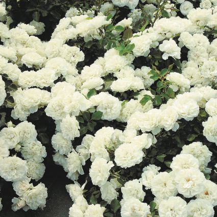 The White Meidiland® Rose, Rosa ‘MEIcoublan’, is a hardy groundcover type rose with large 4″, double, white flowers that are produced all season long.
