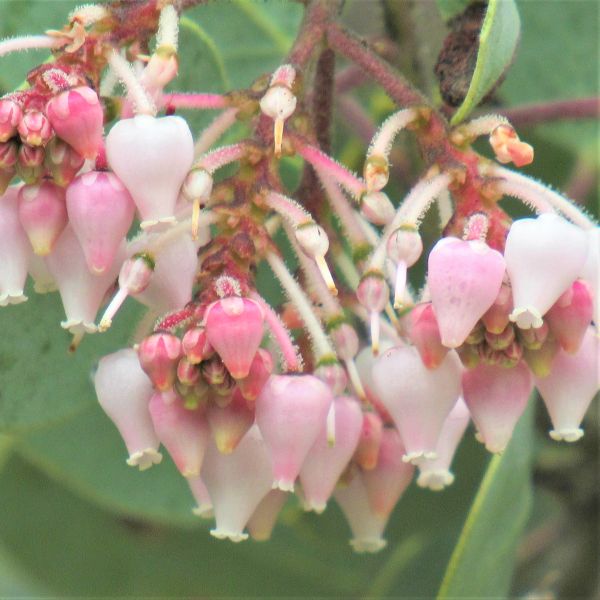 But riding through the chaparral, they were sure to notice the beautiful native Whiteleaf Manzanita (Arctostaphylos manzanita). It grows naturally from Southern California up to Oregon and brings its wild rustic beauty to bear in unlikely places.