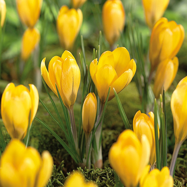 Yellow Mammoth Crocus Glowing Golden Blooms