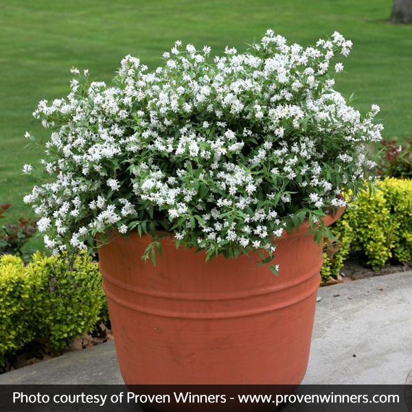 The first snow of winter is always so fun and beautiful, but by spring you’re tired of shoveling, right? Yuki Snowflake® Deutzia (Deutzia x ”NCDX1”) gives you that same first flush of fun and beauty, but no shoveling later! The milky-white blooms are like a carpet of snow covering the low-growing, spreading shrub.